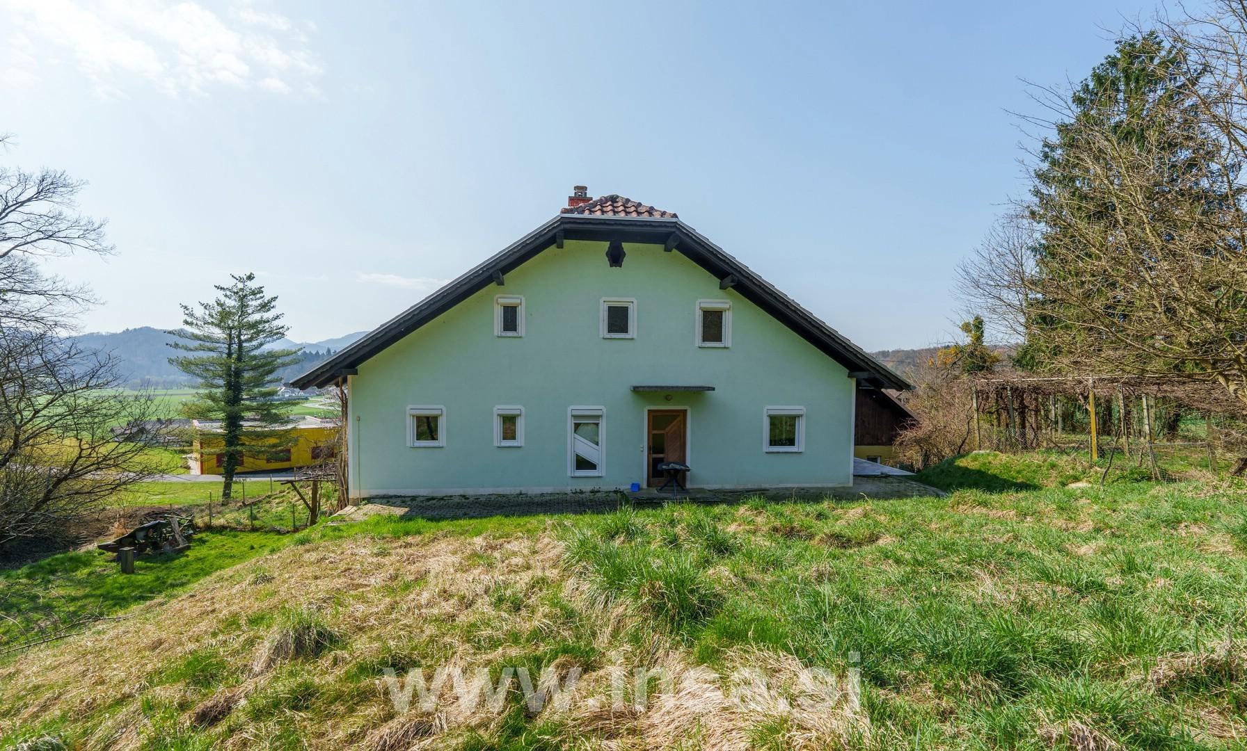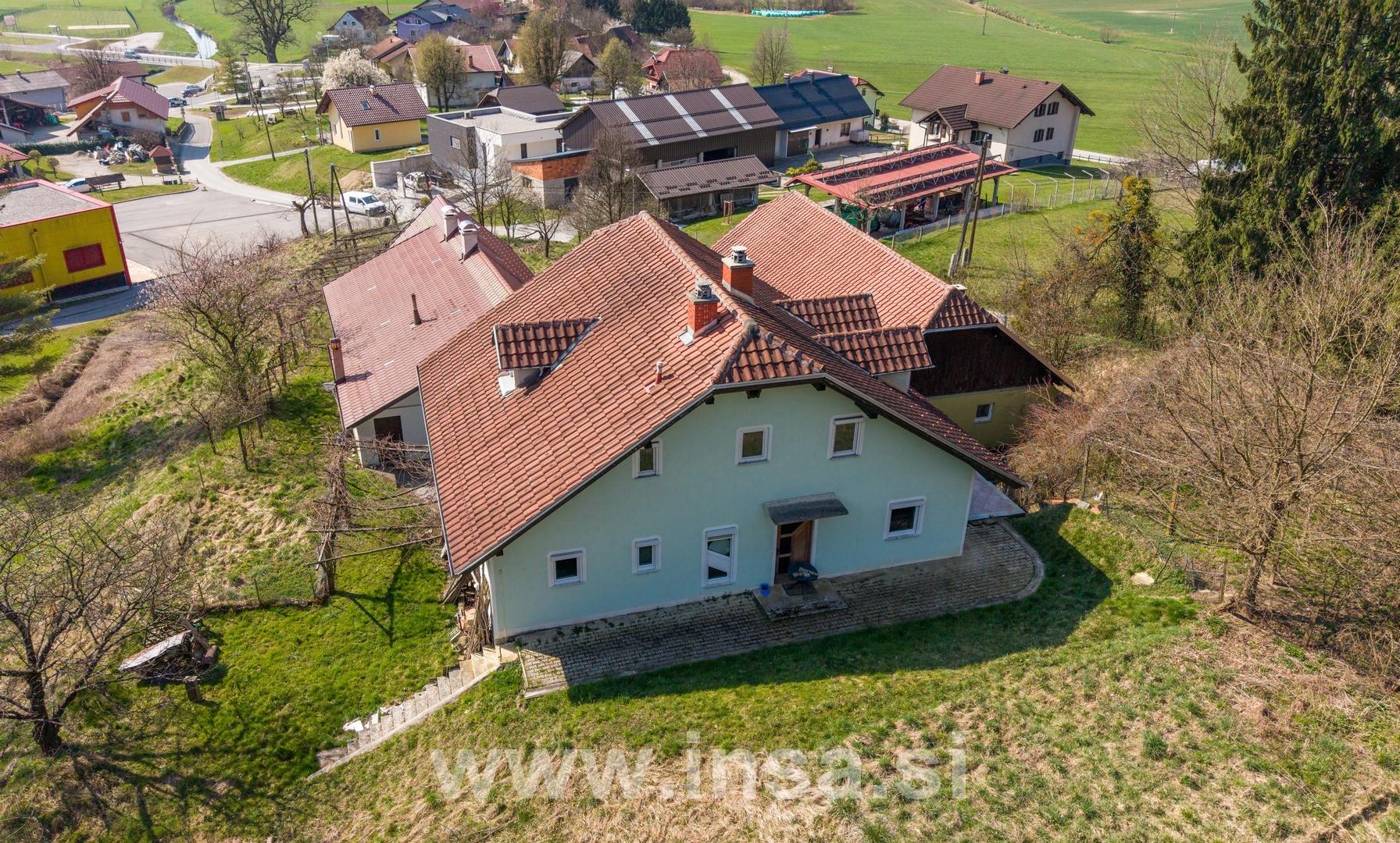 Naprodaj je večja, urejena družinska hiša z gospodarskim poslopjem in pripadajočimi zemljišči – stavbne in kmetijske površine v skupni izmeri 44.370m2.