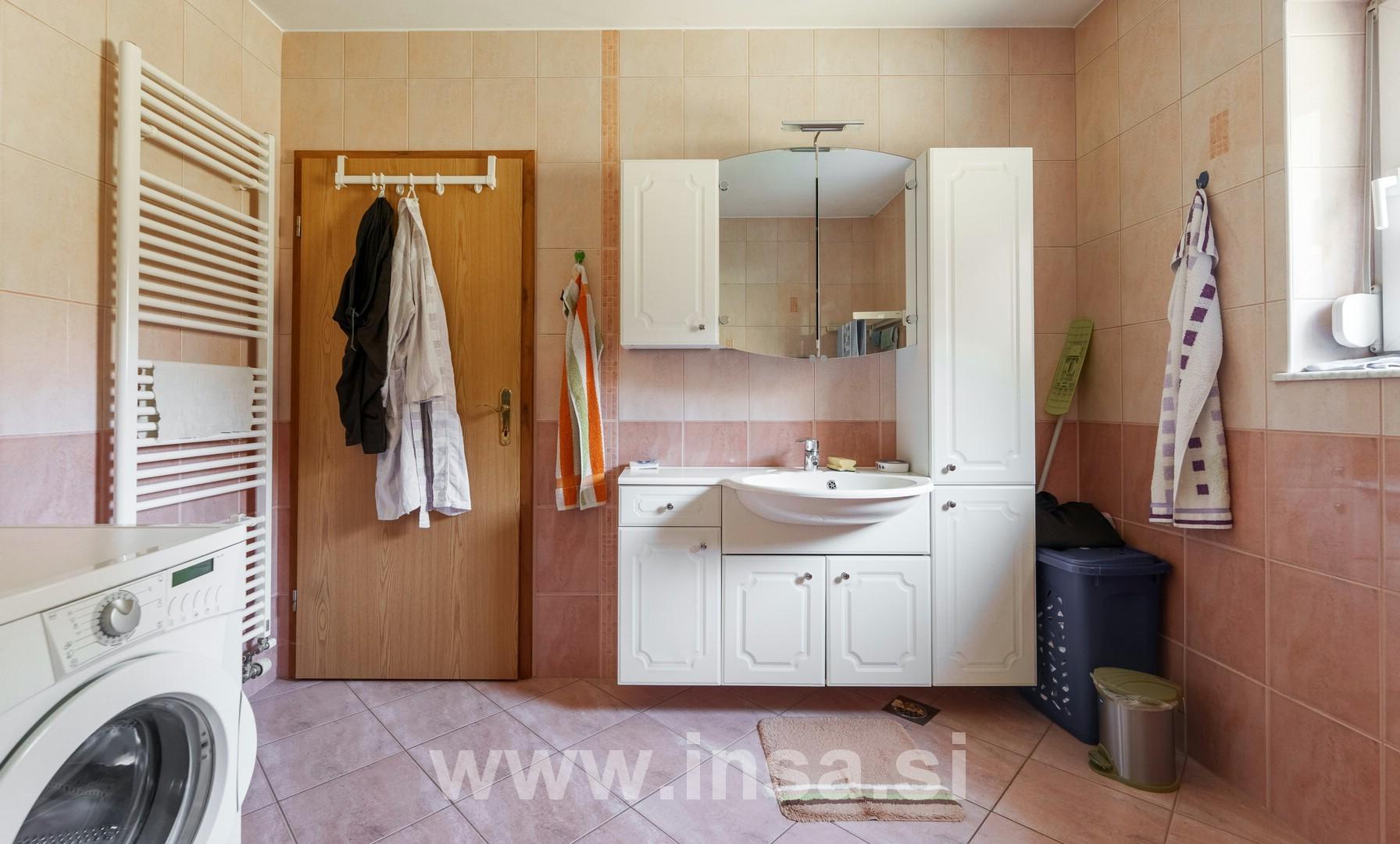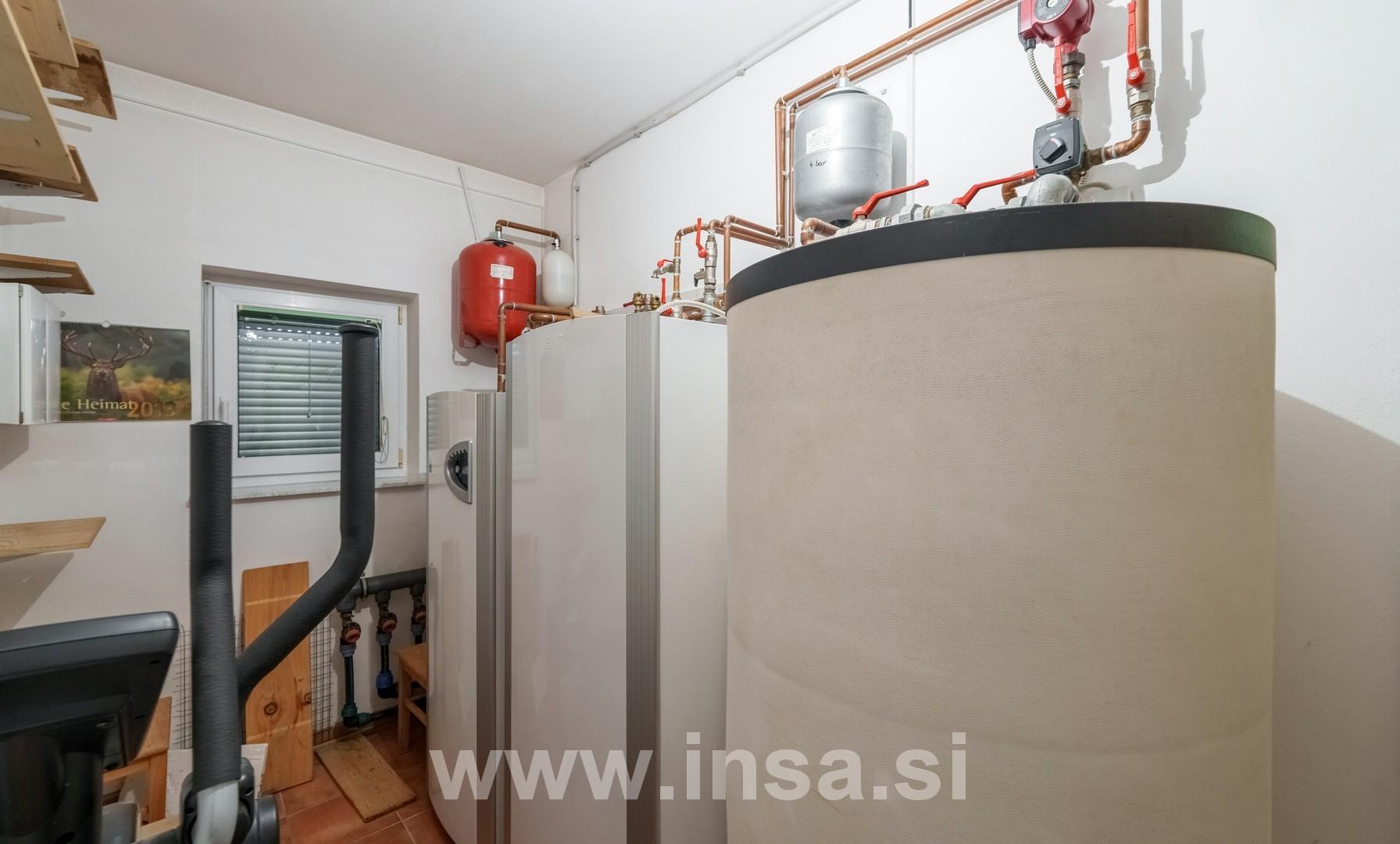 Kletni del obsega; veliko garažo, shrambo za ozimnico, dodatno shrambo, kurilnico, sanitarije in večjo kuhinjo z jedilnico.