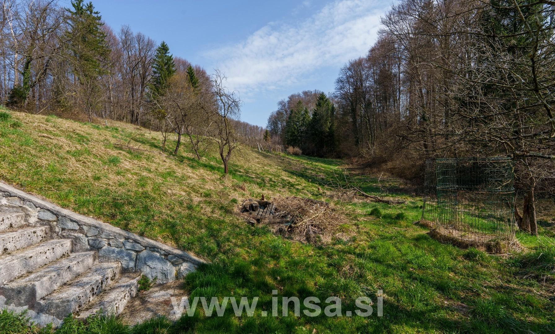 Stavbo zemljišče v skupni izmeri 3.943 m2 – obdaja objekte in je delno ravno in delno pod blagim naklonom. Kmetijske površine; njive (razpršene v skupni izmeri cca. 9.000 m2).  Gozd 21.590 m2. Ostalo ( cca. 9.800 m2) je delno opuščen vinograd, nekaj travnika in sadovnjaka.