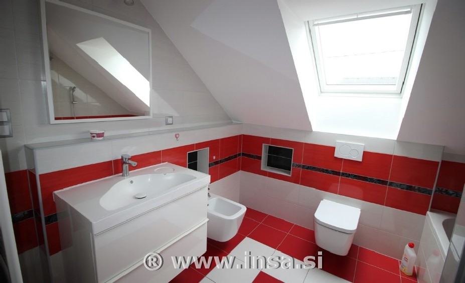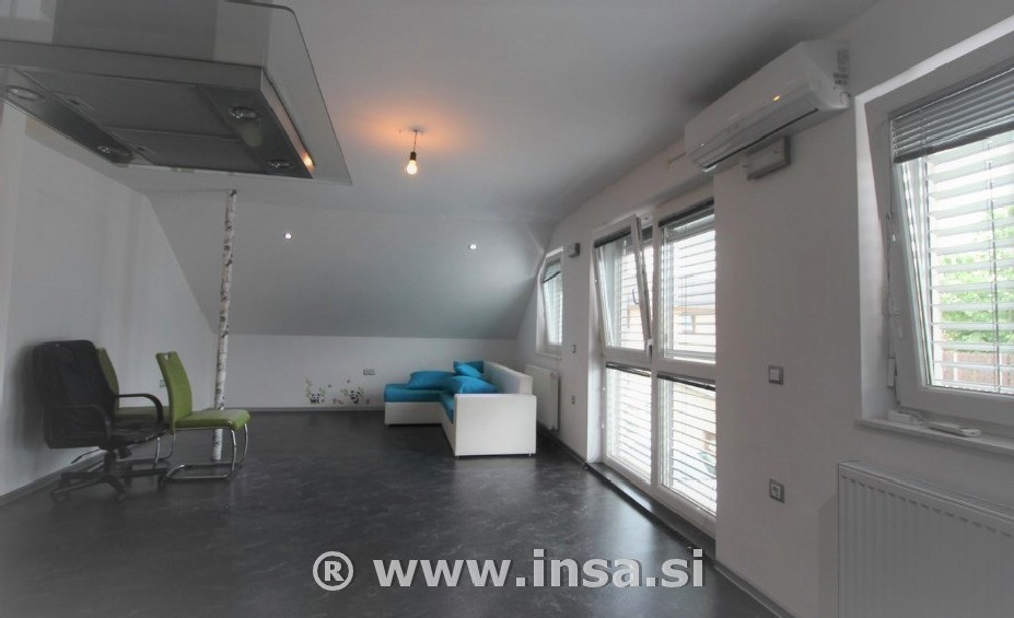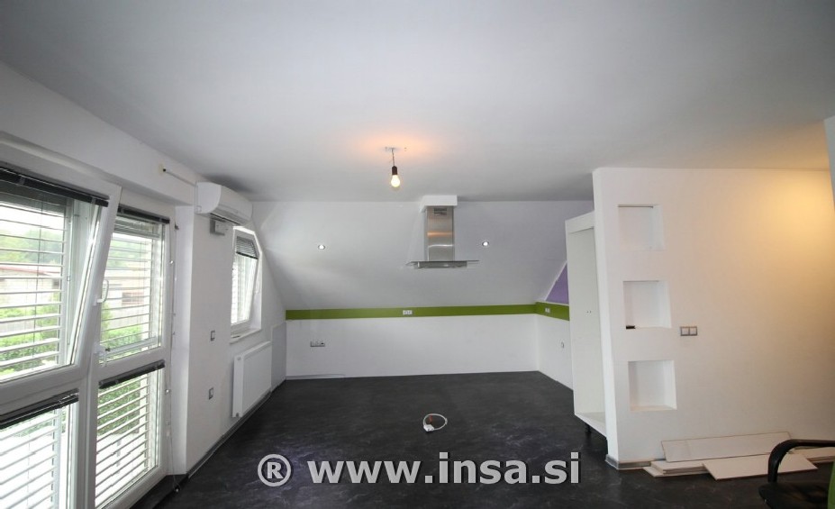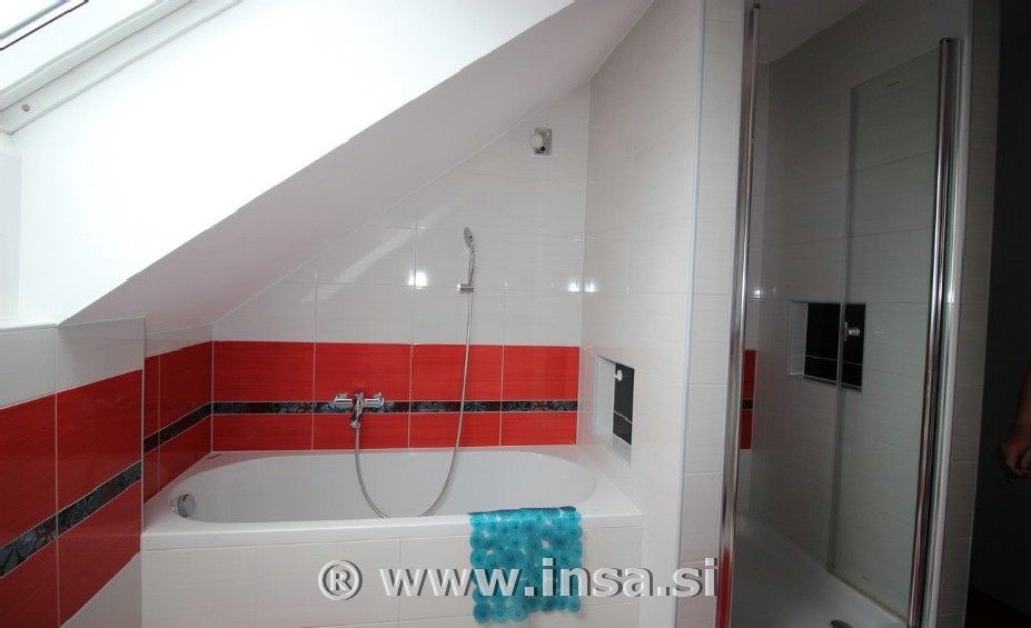 Mansarda obsega ločeno stanovanjsko enoto in obsega: tri sobe, večji dnevni prostor s kuhinjo in jedilnico, balkon ter lepo veliko družinsko kopalnico z vgrajenim tušem in kopalno kadjo.