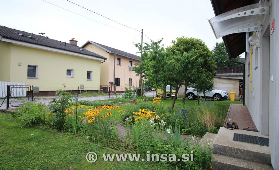 Pripadajoče zemljišče v izmeri 541m2 je skoraj v celoti ograjeno in urejeno, objekt je postavljen na rob zemljišča tako je pred hišo veliko zelenice, prostora za vrt in sadno drevje.