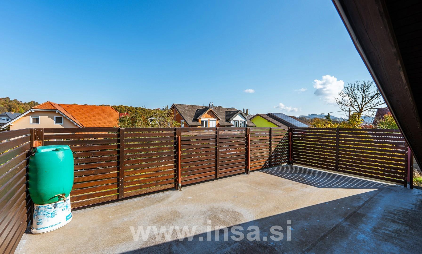 • Izvedba: klasično grajena hiša z balkonom in veliko teraso v mansardi.