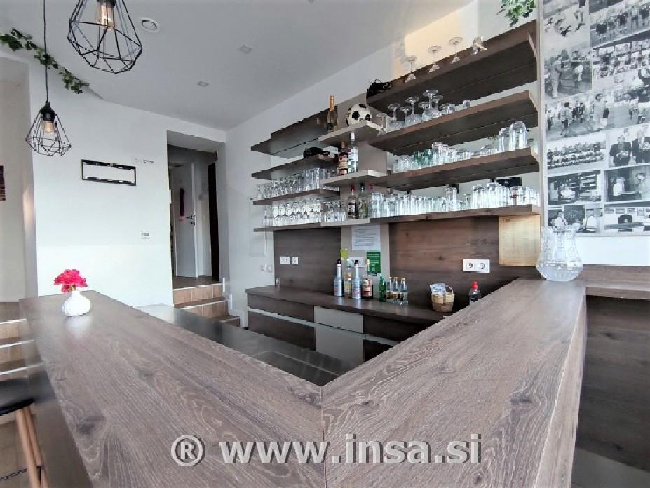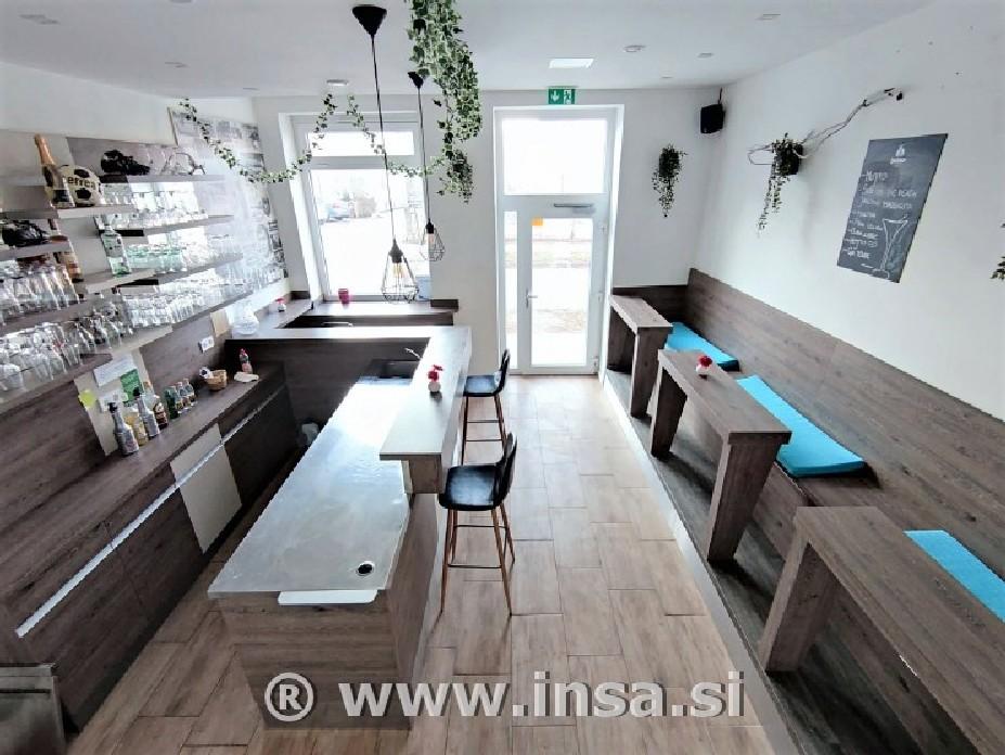 Poslovni prostor – gostinski lokal, se nahaja v pritličju in je po podatkih GURS-a velikosti 42m2 + pokrita terasa v velikosti 25,5m2. Za objektom je tudi skladiščni prostor v velikosti cca. 25m2.