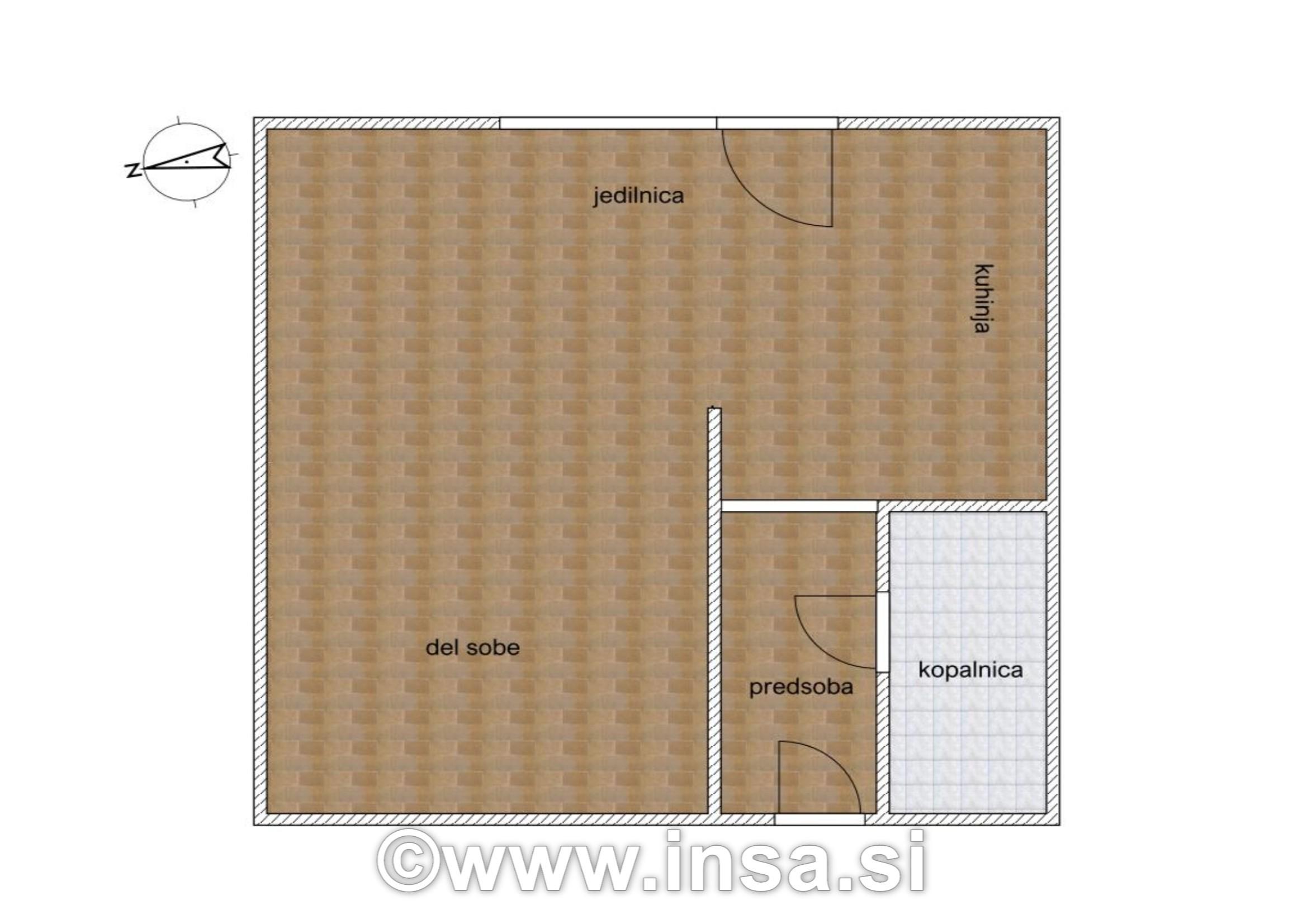 Površina stanovanja znaša skupaj s kletjo (1,90m2) 26,20 m2 površine, orientacija pa je na Vzhod. Tloris si lahko ogledate med slikami.