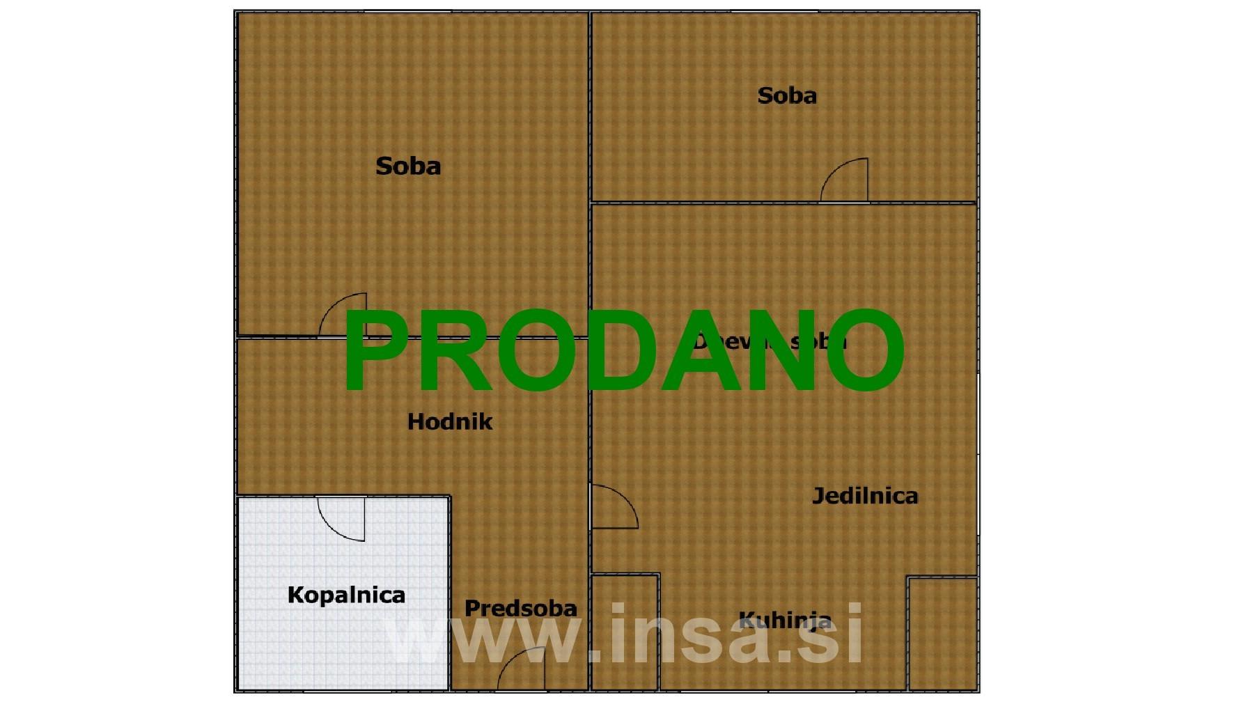 - Skupna površina: 75,8 m2 (podatki GURS-a), od tega kletna shramba v izmeri 3,6 m2.